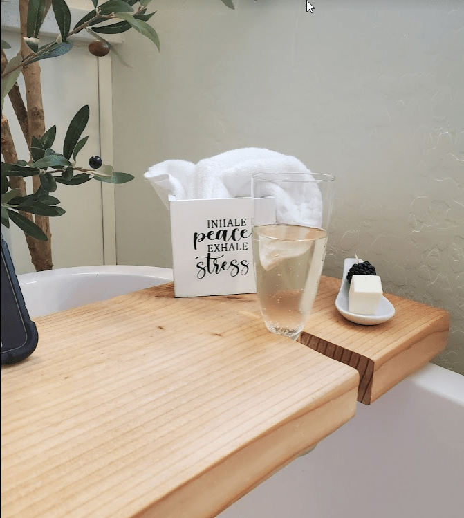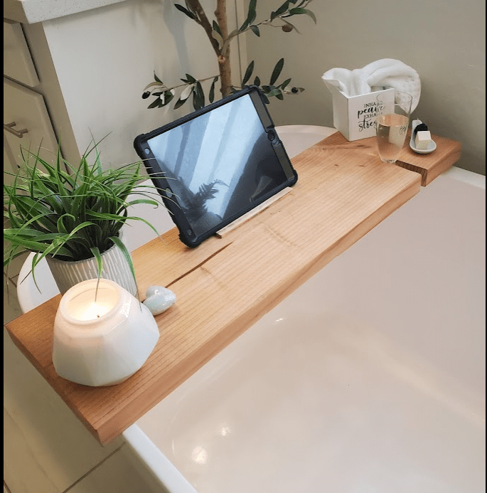 What’s that one thing you enjoy after a stressful, hectic day. For me, it’s a nice warm bath with some amazing smelling candles, Netflix and some good drink! We had no such place in our house until I decided to change it!! This DIY Bath caddy is a quick and simple project that immediately updates your bathroom making it looking modern and classy! Blending all the features was a perfect way to go! It is also a very simple and beginner friendly DIY, I got it ready in a few hours.