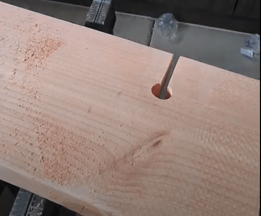 - Next, using a spade bit drill a hole on around 2-3 inch inside from the support. This will be your drink holder. I used 1inch bit but you could totally use according to your glass holder size.