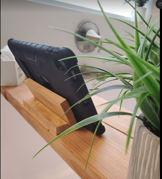 - Then added another small piece of wood in the front to prevent the Ipad/Book from sliding.