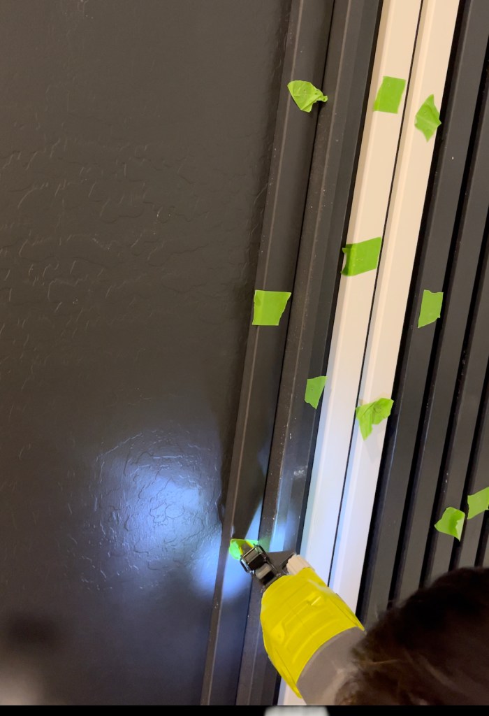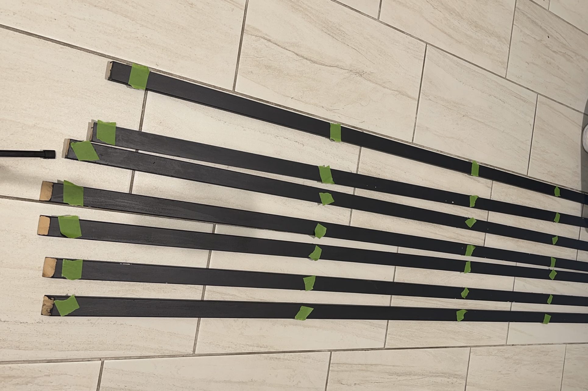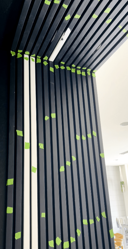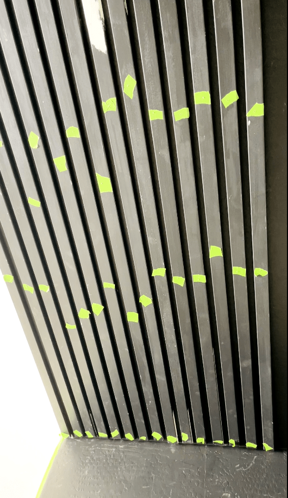 Next tape the slats using frogtape. I taped them at approx 2′ apart.