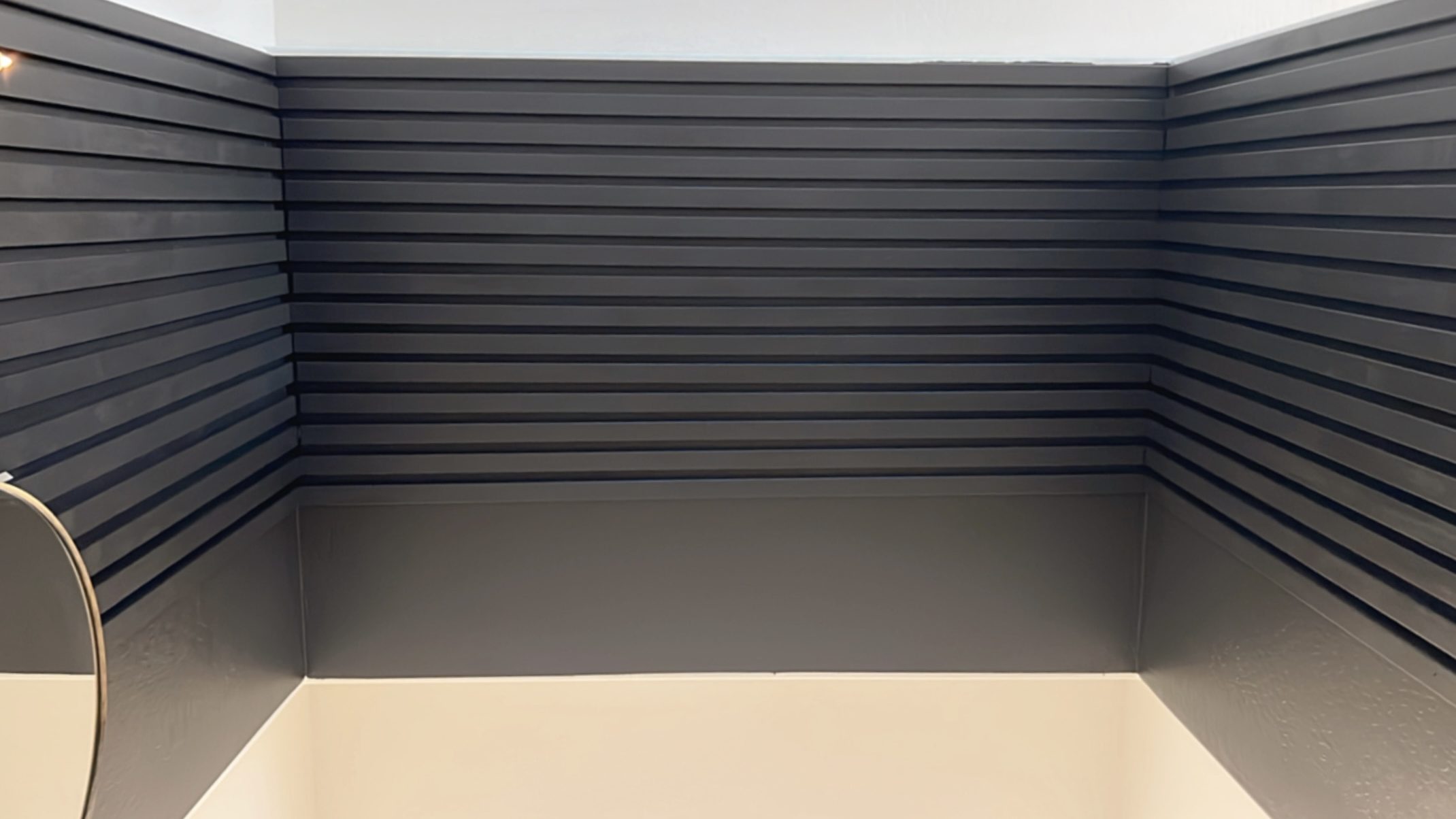 There are many ways to add slats, you could have a contrasting wall and slats, or same colored slats. You can paint the slats or you can stain them. I knew I needed the slats painted so I used primed MDF. If you want to stain the slats them you can either buy common or poplar boards.