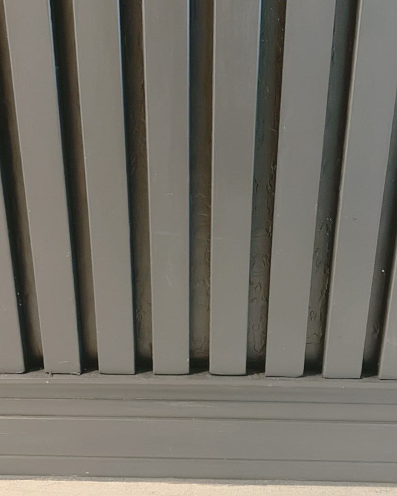 Now that all the slats are installed, I like to caulk the first and last slat to give it a more finished look. Also, make sure you have caulked where the baseboard meets quarter round.